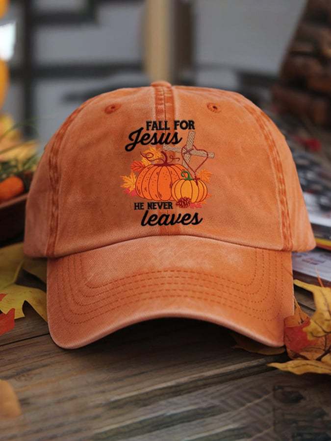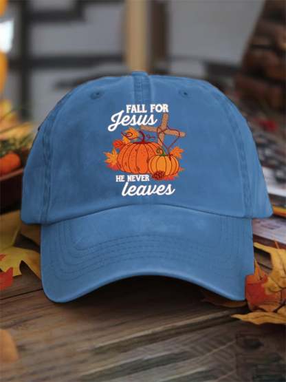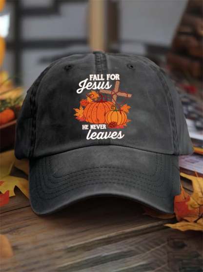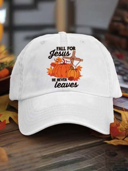 Fall For Jesus He Never Leaves Print Baseball Cap
