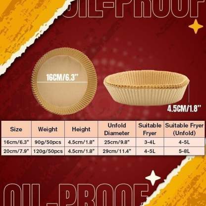 Including 50pcs of paper liners, sufficient quantities offer a wide range of choices for your daily cooking, baking and replacement needs. Just throw away the paper liner after use. No need to clean the fryer anymore.