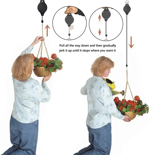 🌟Suit For - Hanging plant pulley design for holding decorative hanging plants, flower baskets, pots, birdcage, can be used in the garden, eaves, home, porch, balcony but not suit for in the wind outdoor. These plant pulleys will keep your plants healthy and living without the mess.