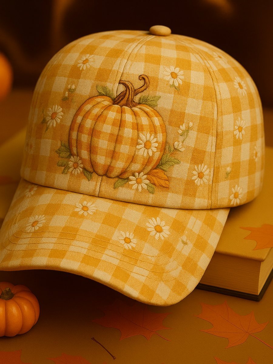 Women's Plaid Pumpkin Baseball Cap